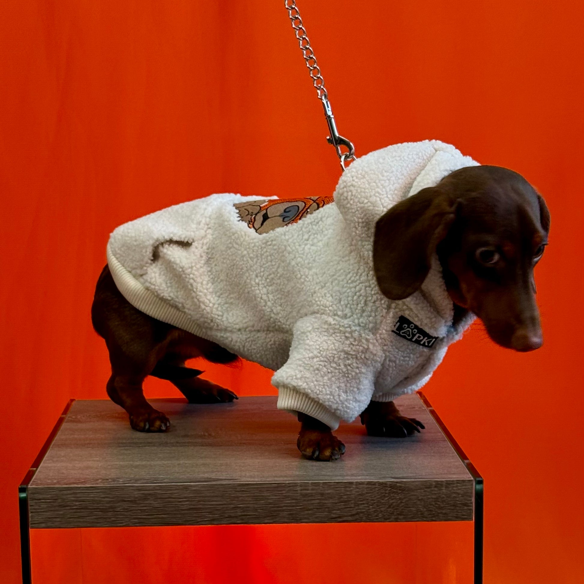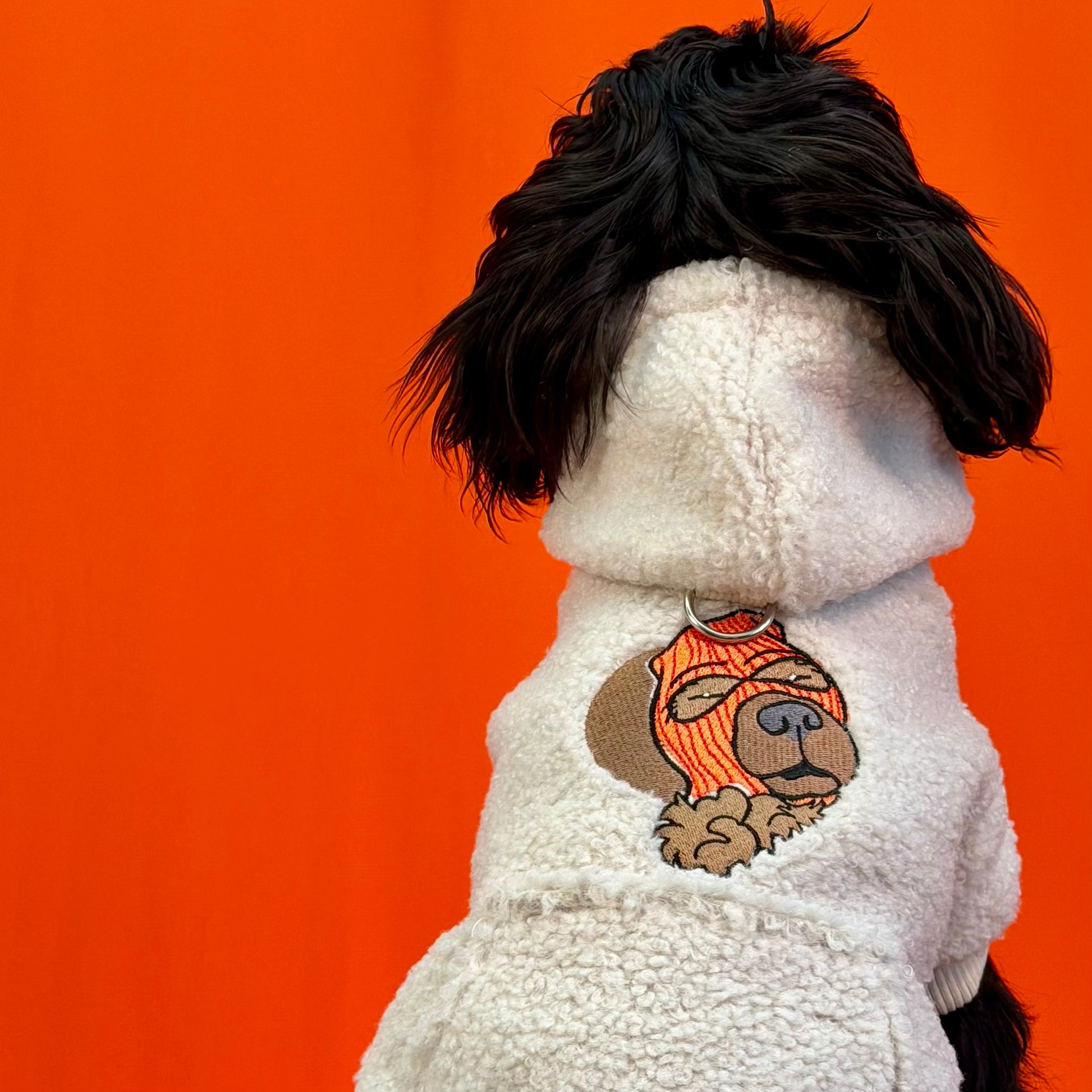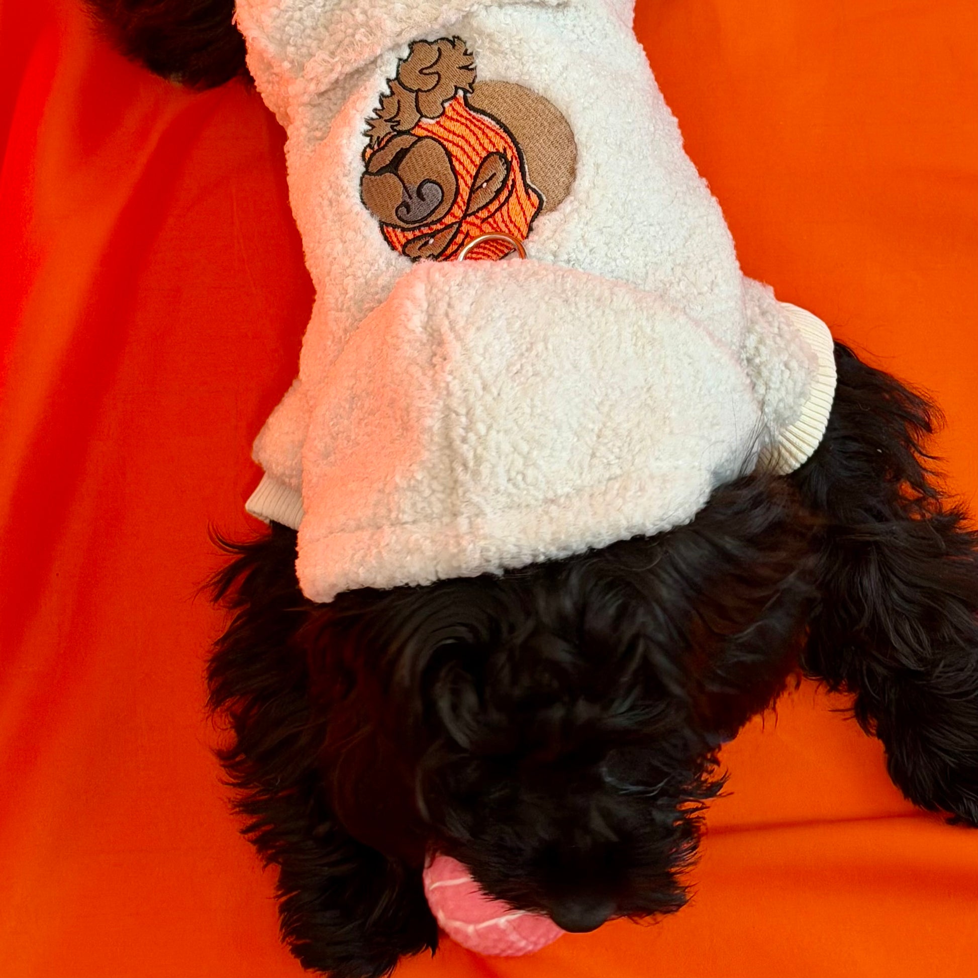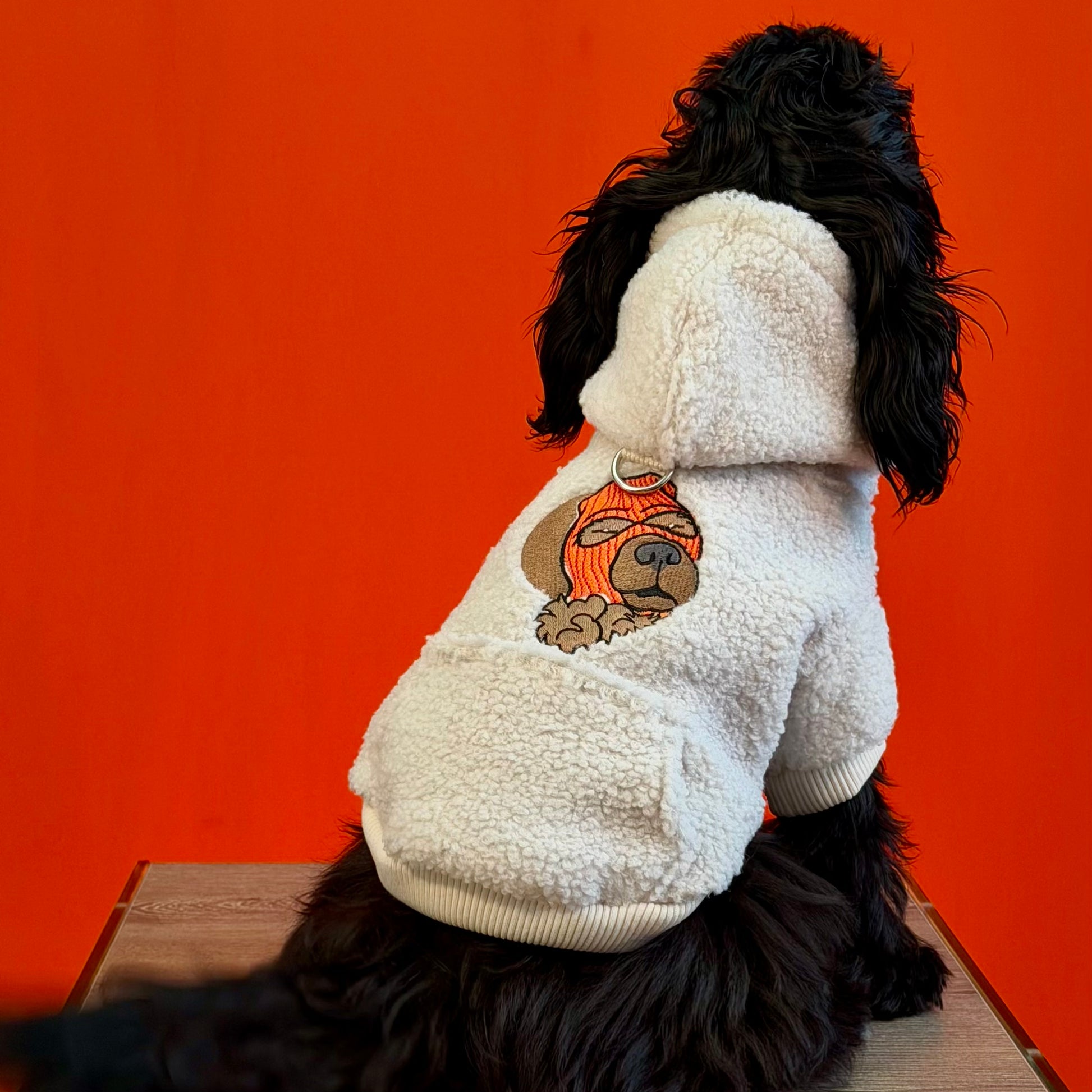 Wrap your pup in cozy sherpa softness with our Treat Thief embroidered hoodie. Featuring a detailed stitched design on the back, ribbed cuffs, and a comfy fit, this piece adds warmth and playful personality to every walk.